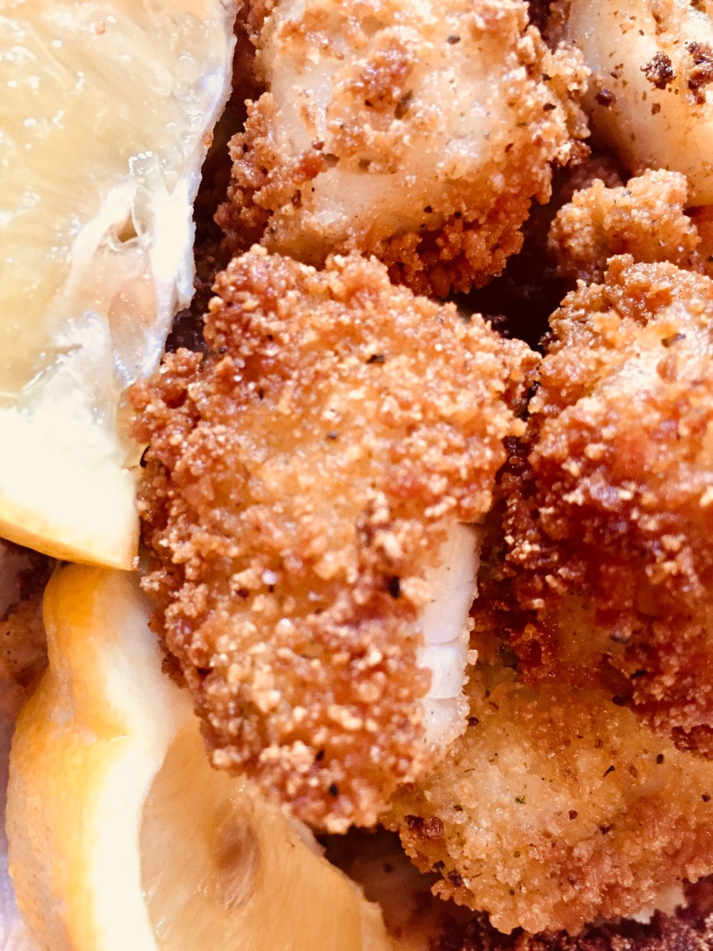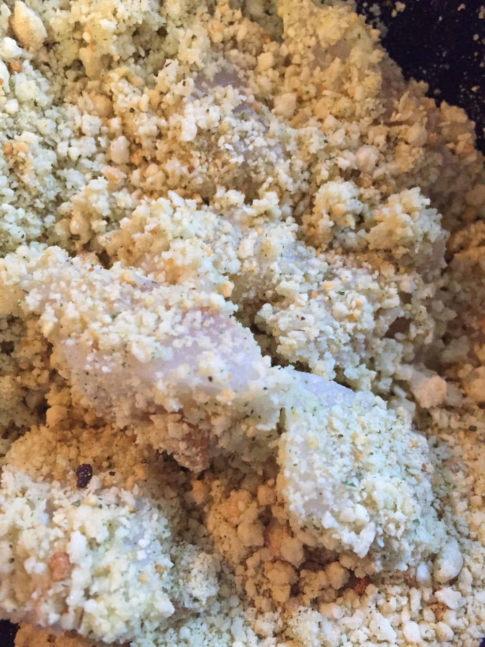 My favorite thing about this recipe is its flexibilty. I have prepared it with catfish, cod, tilapia, and pollock, with equal success. Out of convenience, I generally use the Ian’s italian seasoned gluten-free breadcrumbs, which do not require any seasoning beyond salt and pepper (and even then, that’s a matter of taste). You can easily swap out the seasoned breadcrumbs in this recipe, however, for the plain variety. Doing this allows complete control over the seasoning of the breading, and the flavor possibilities are endless.