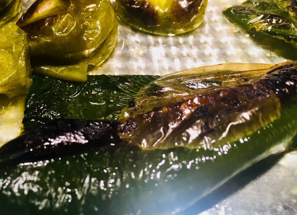 After your tomatillos are prepped, you need to seed your poblano. At that point your veggies will be ready for roasting.